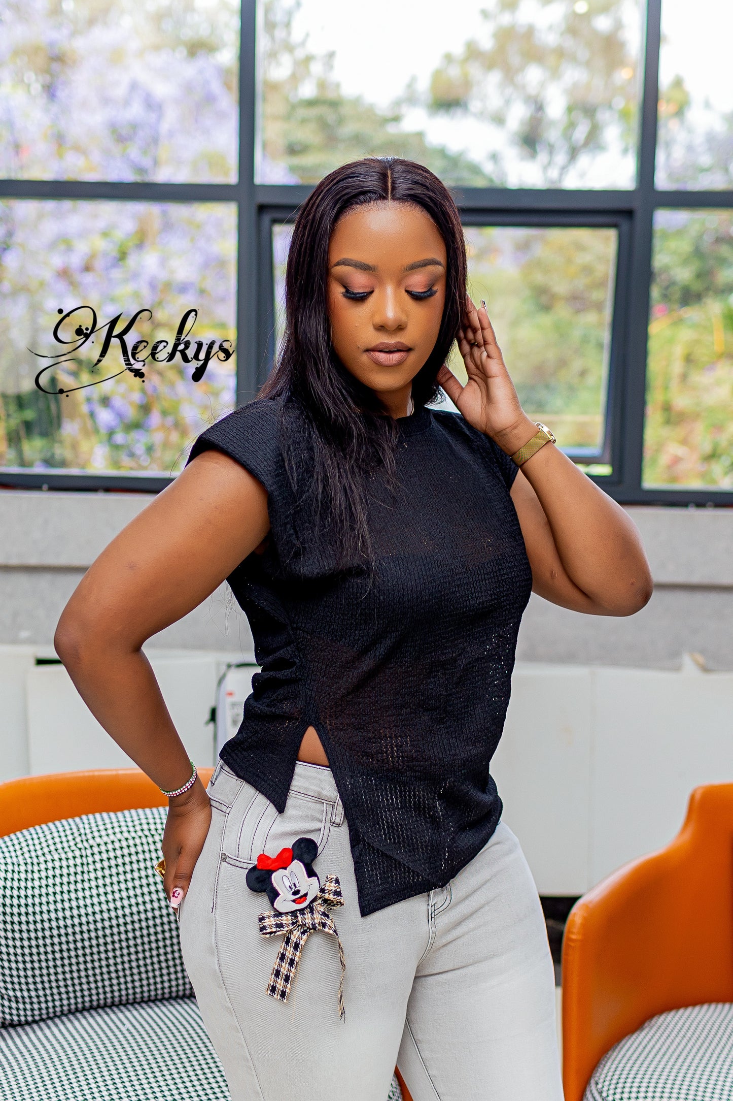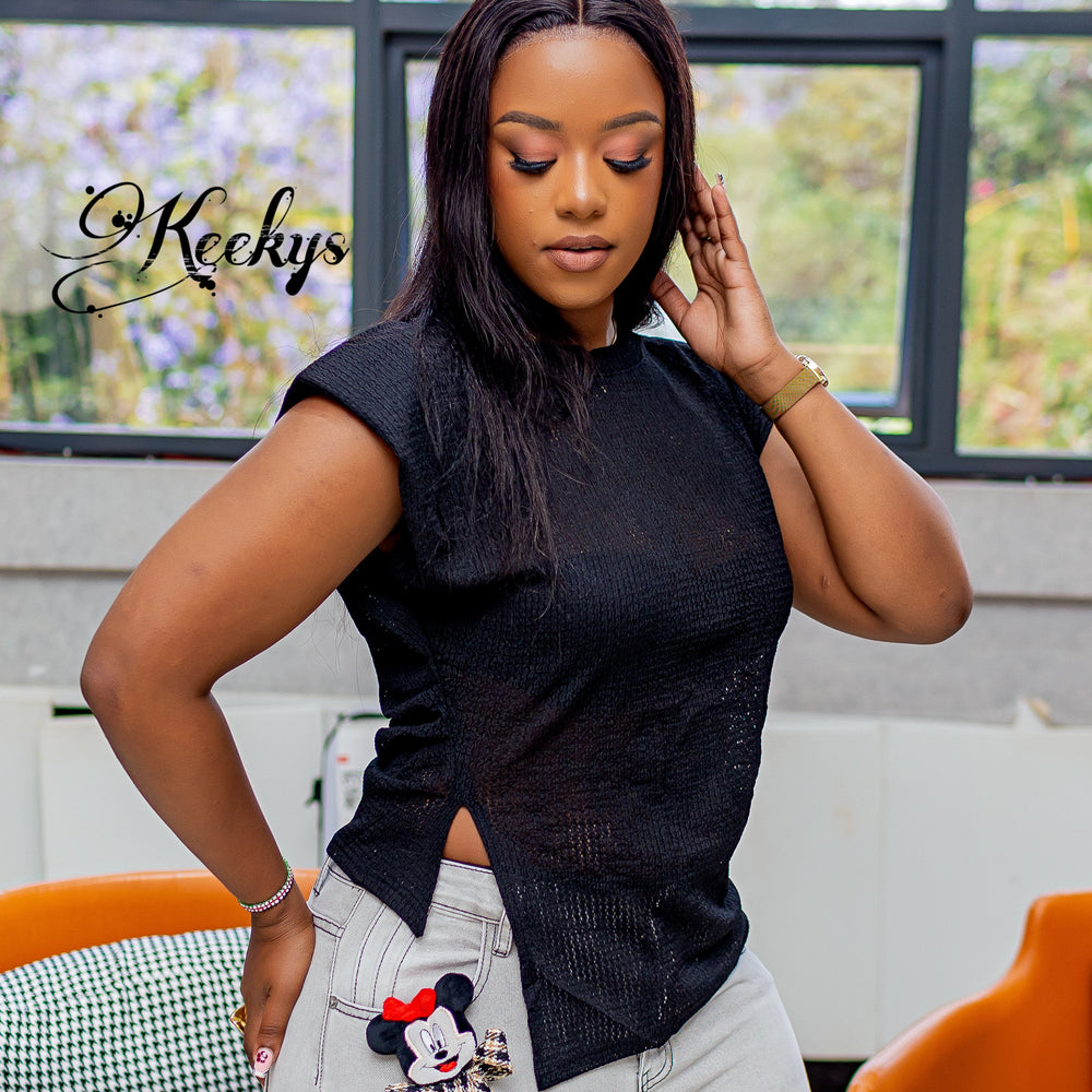 Sleeveless with padded shoulders for a sophisticated fit.